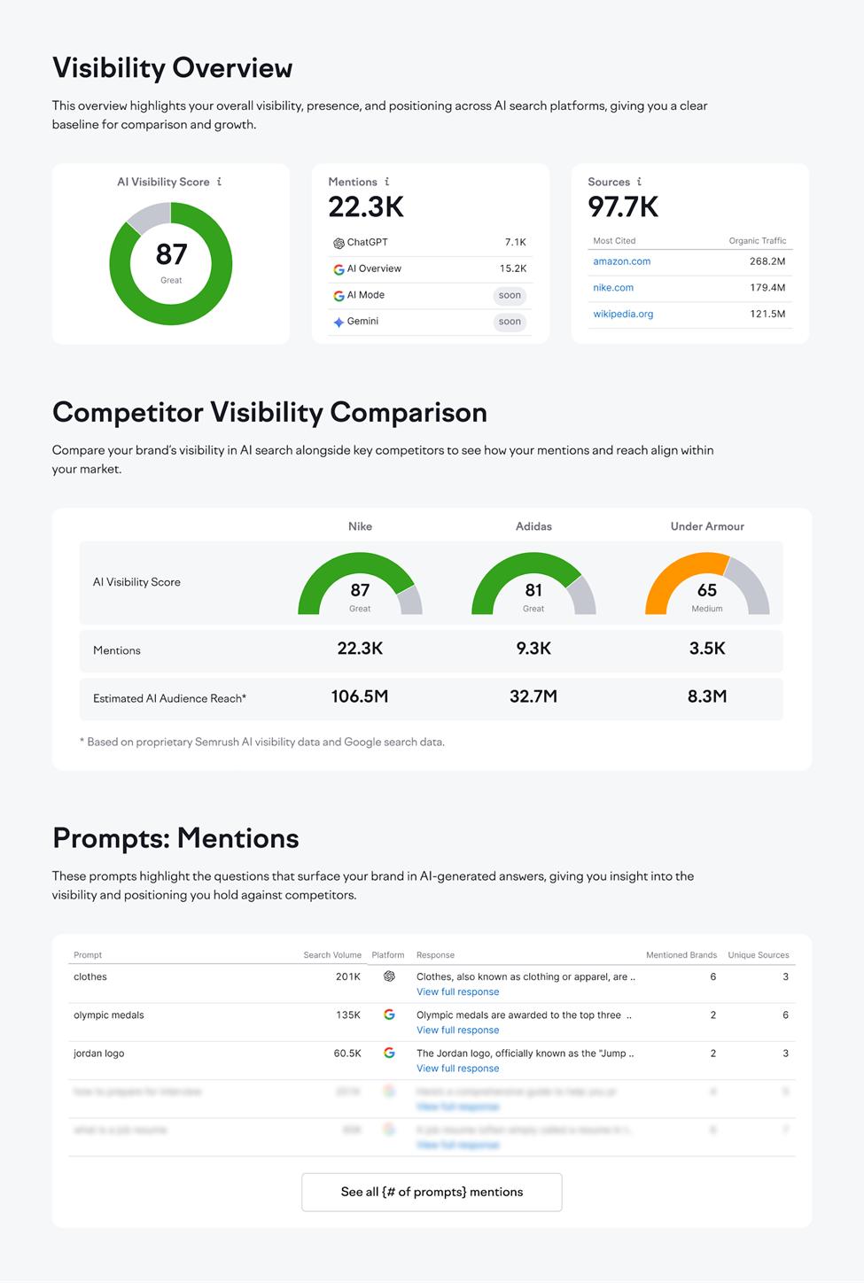 Many well-known SEO platforms are now incorporating AI visibility features into their existing toolsets.